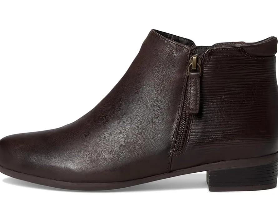 - Take every step in style and comfort by wearing the Trotters® Major Embossed boots. The round-toe boots have slight block heels, side zipper closure, and a sleek look. The leather upper with tricot fabric lining and removable cushioned footbed with arch support add additional comfort to the feet for prolonged wear.