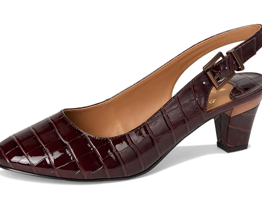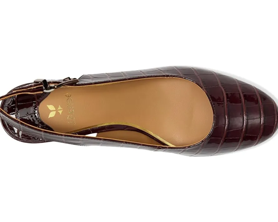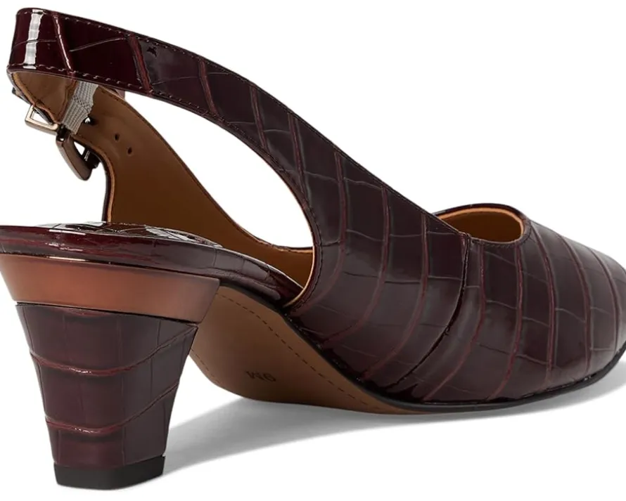 - The J. Renee® Malree is a year-round staple that blends classic sophistication with comfort-focused design. Featuring a croco-embossed almond toe, it’s crafted with a polyurethane upper and lining, and set on a block heel for subtle elevation. The buckle adjustable slingback strap closure ensures a secure fit, while the memory foam + latex insole provides cushioned support for all-day wear.