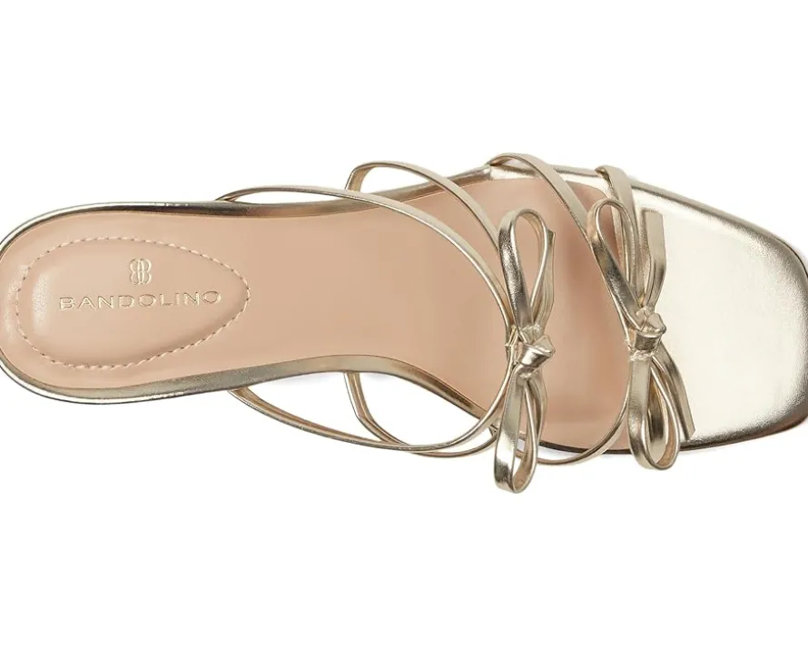 - The Bandolino® Margil dress sandals add instant style to any outfit. It features a mid block heel, bow detailing and a modern square toe. The Margil is the perfect wardrobe staple! Established in 1960, Bandolino is a mix of timeless design and uncompromising quality.