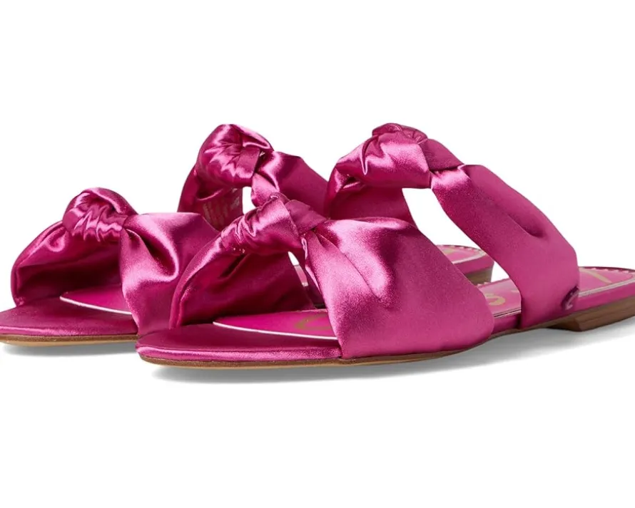- Walk in comfort, step out in style: The Marissa flat sandal from Circus NY by Sam Edelman® is your new go-to for effortless elegance. Designed for trendsetters who crave both fashion and function, this must-have slide features a sleek satin upper with a sophisticated two-band design-your new go-to for day-to-night styling. The slip-on silhouette ensures easy wear, while the lightweight PU insole and flexible TPE outsole keep every step cushioned and comfortable.