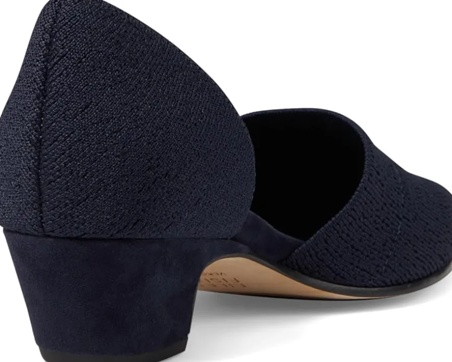 - The Eileen Fisher® Marra is a slip-on two piece pump with a soft almond toe and recycled poly knit upper offering a nice stretch on the top for comfort. With an easy pull-on style, the mid-top footwear has block heel and backstrap for added support.