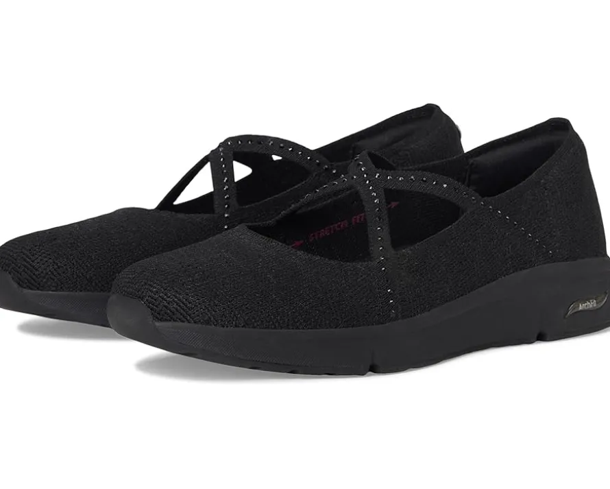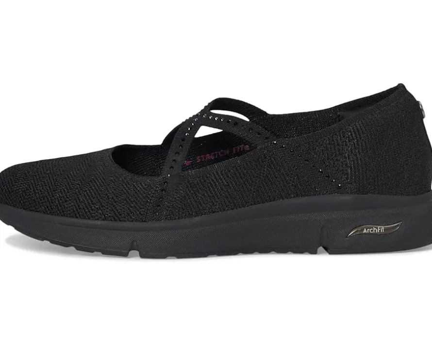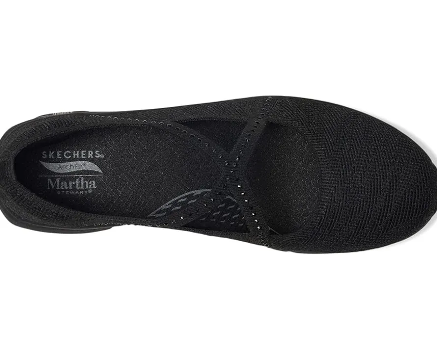 - Celebrated lifestyle expert, Martha Stewart, delivers her one-of-a-kind touch to these SKECHERS® Martha Stewart Arch Fit Living – Meadow Walk shoes. A part of the Skechers x Martha Stewart collaboration, these Mary Jane shoes feature a recycled knit mesh upper with rhinestone embellishments and a removable Arch Fit insole with podiatrist-certified arch support. Their footbed helps mold to your foot to reduce shock and increase weight dispersion, while the Stretch Fit design provides socklike comfort. They are crafted with 100% vegan materials. Lounge about in laid-back comfort with these slip-on shoes.