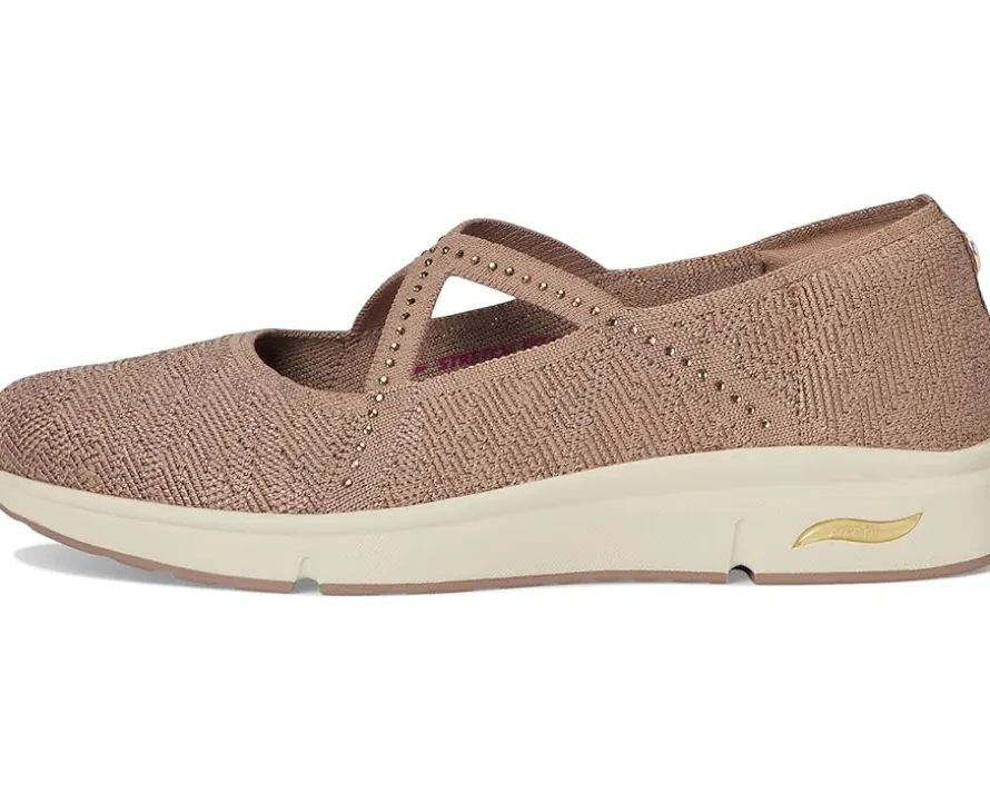 - Celebrated lifestyle expert, Martha Stewart, delivers her one-of-a-kind touch to these SKECHERS® Martha Stewart Arch Fit Living – Meadow Walk shoes. A part of the Skechers x Martha Stewart collaboration, these Mary Jane shoes feature a recycled knit mesh upper with rhinestone embellishments and a removable Arch Fit insole with podiatrist-certified arch support. Their footbed helps mold to your foot to reduce shock and increase weight dispersion, while the Stretch Fit design provides socklike comfort. They are crafted with 100% vegan materials. Lounge about in laid-back comfort with these slip-on shoes.