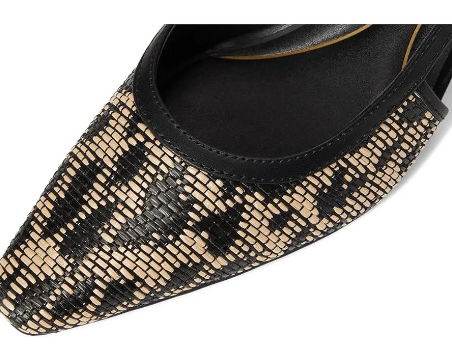 - Slingback strap with adjustable buckle closure.