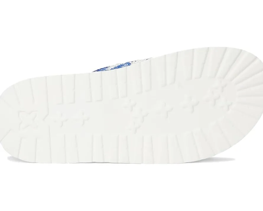 - Meet the Blue™ by Betsey Johnson Matie, the slip-on statement sandal designed to elevate your everyday with effortless flair. Crafted with a sleek PU upper and soft PVC lining, this style pairs bold beauty with lasting comfort. The faux leather insole features a contoured footbed that supports your stride, while the rubber outsole ensures confident traction from sunny sidewalks to weekend strolls. A chic platform heel adds instant height without sacrificing ease, and the breezy open toe keeps every step fresh and fun. Finished with a stunning floral design, the Matie sandal delivers the perfect balance of whimsical charm and casual cool.