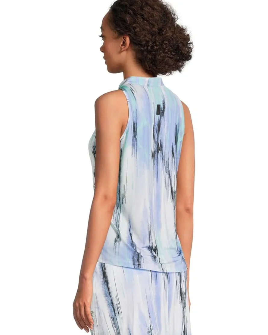 - Own the look wearing the classic Jamie Sadock® Matrix Print Sleeveless Top. Made using Cooltrex® Performance Fabric, this top features mandarin collar with V- neckline, sleeveless style, classic fit, modern, and tasteful design.