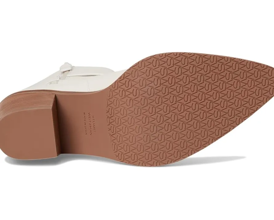 - Make a bold fashion statement wearing the Stuart Weitzman® Maven Western Booties. These heeled boots are made of a leather upper, insole, and lining. The zippered side closure offers easy wear, while the buckle closure ensures a perfect fit. These leather boots make a great addition to your footwear collection.