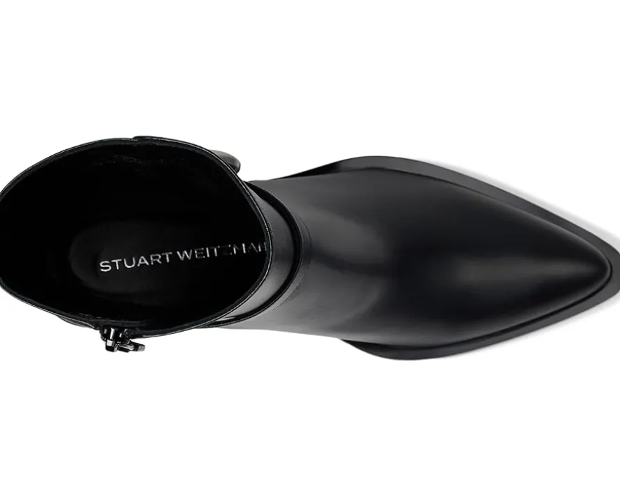 - Make a bold fashion statement wearing the Stuart Weitzman® Maven Western Booties. These heeled boots are made of a leather upper, insole, and lining. The zippered side closure offers easy wear, while the buckle closure ensures a perfect fit. These leather boots make a great addition to your footwear collection.