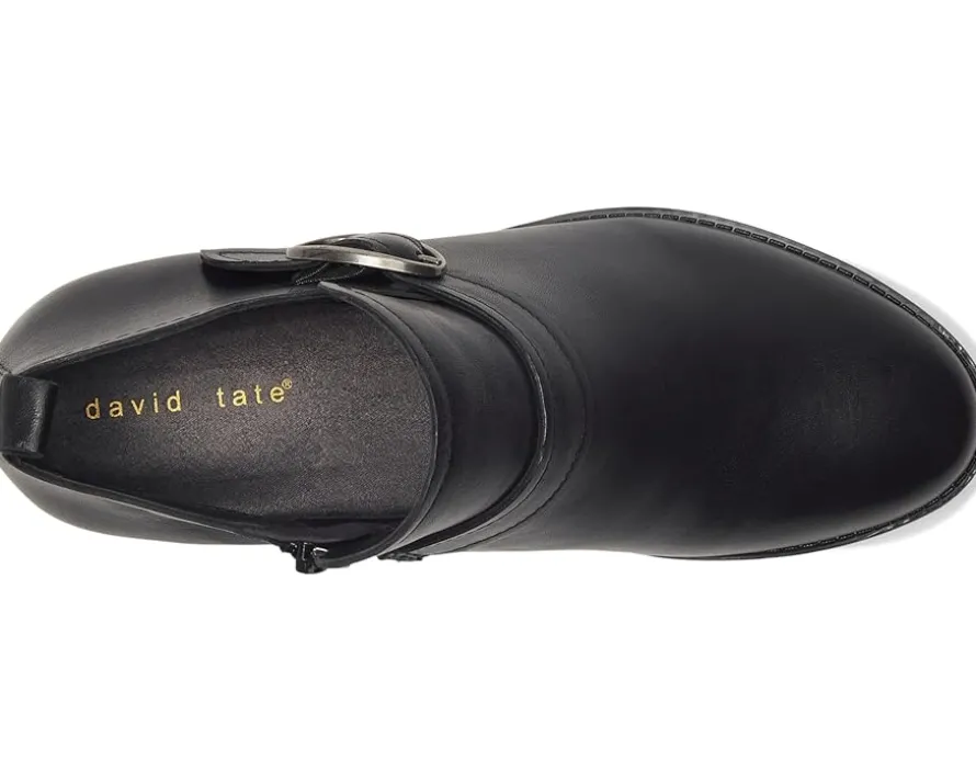- The David Tate® Maverick boots feature a water-resistant soft Nappa leather upper and a removable contoured PU footbed and zippered side closure for easy on and off. A leather buckle instep strap and below-the-ankle top create a stylish, comfortable, and supportive boot. The fabric lining keeps your feet cool. Style up your looks and outfits wearing these dress shoes.