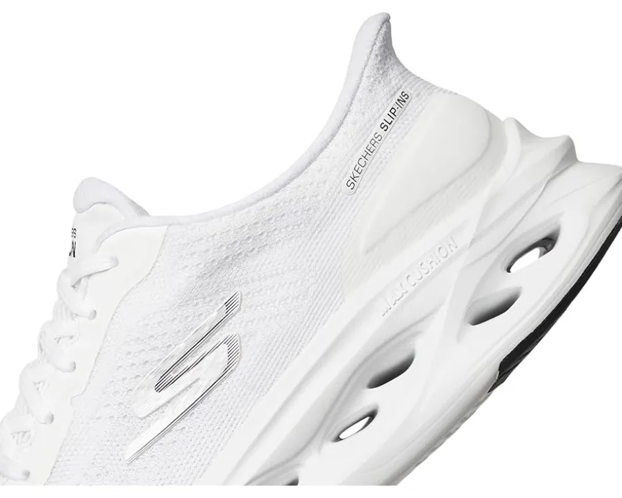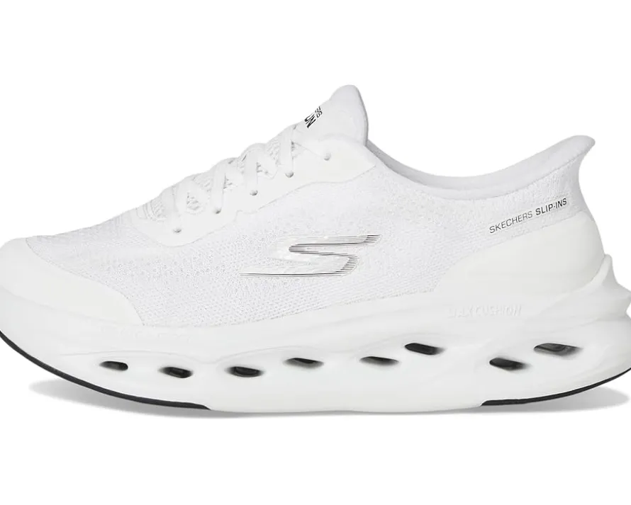 - Experience the ultimate in cushioning and response wearing SKECHERS® Max Cushioning Glide Step Hartford Hands Free Slip-Ins. Designed with exclusive Heel Pillow, this athletic laced slip-on style features an engineered knit upper, Skechers Air-Cooled Goga Mat insole, Ultra Go midsole cushioning, and an anti-slip Goodyear Rubber Outsole. It comes with round toe design, lace detailing, and brand detailing on the tongue, sides, and footbed.