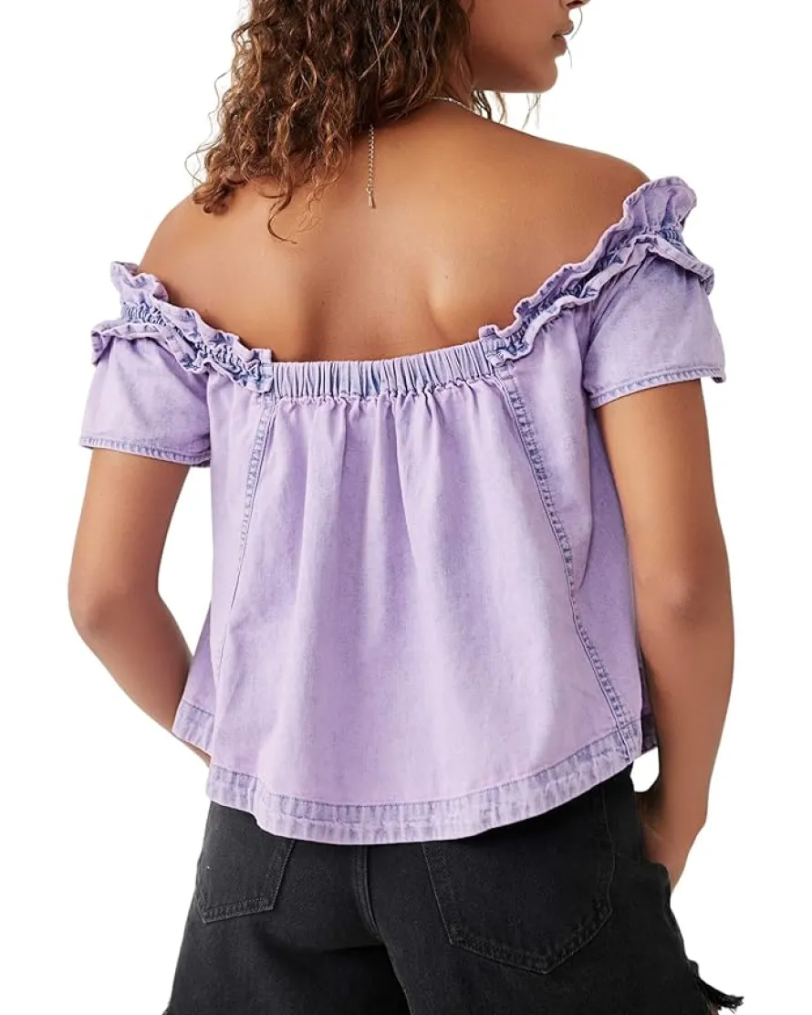 - Off-the-shoulder short sleeves.
