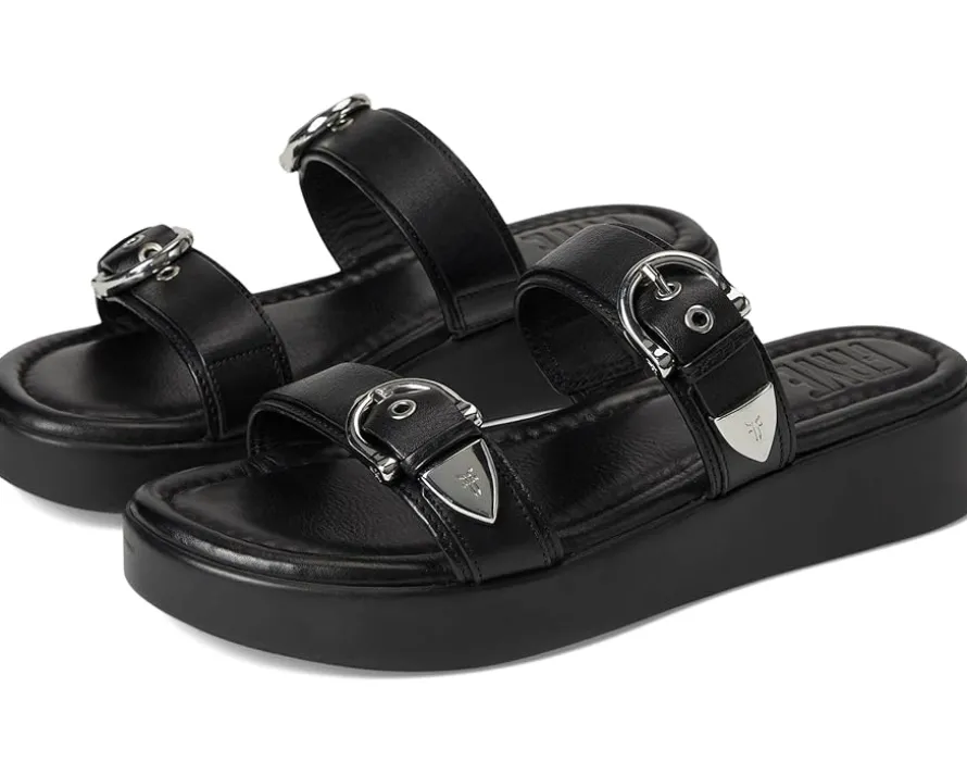 - The Frye® Maya Buckle Sandals are crafted with a soft, natural full-grain leather upper and a soft, cushioned EVA construction, adding sophistication and comfort to any outfit. Featuring elegant and simple styling, this warm-weather essential showcases adjustable leather straps with buckle closure for a customized fit. These slide sandals are made of a foam insole and leather lining.