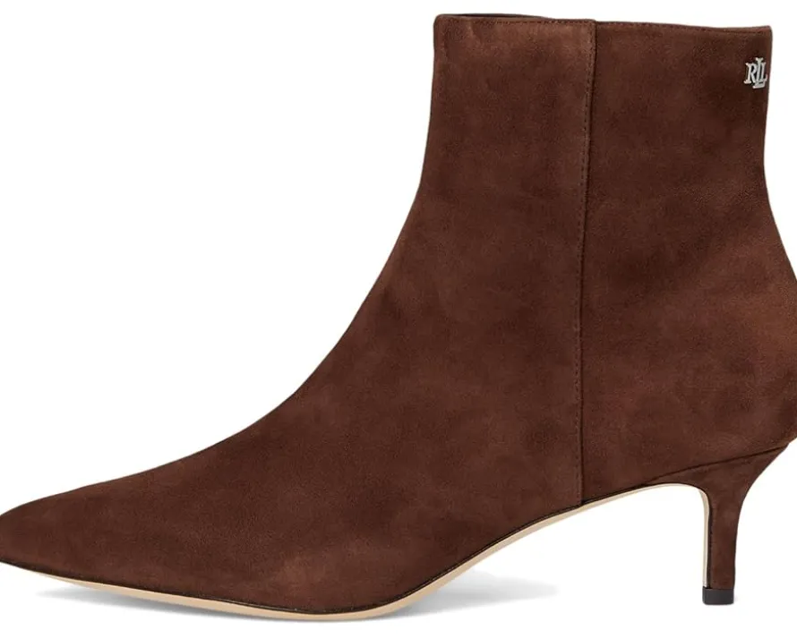 - Crafted with velvety suede, the LAUREN Ralph Lauren® McKay Suede Bootie Heel features a streamlined, pointy toe silhouette set on a slender kitten heel. An “LRL” logo at the side completes the look.
