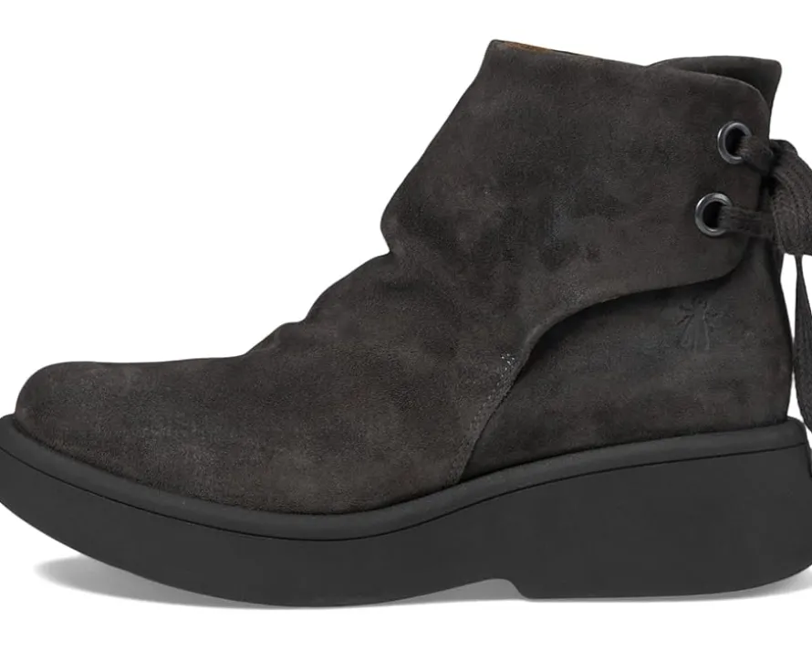 - Designed with a back tie, the FLY LONDON® MEBS189FLY Ankle Boot looks unique and provides a flexible, comfortable fit. The rich suede upper is fabric lined and the thermoplastic rubber outsole is lightweight with a removable cushion insole and comfortable rounded toe silhouette.