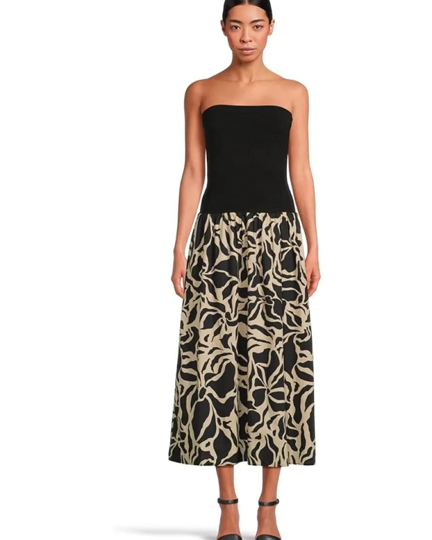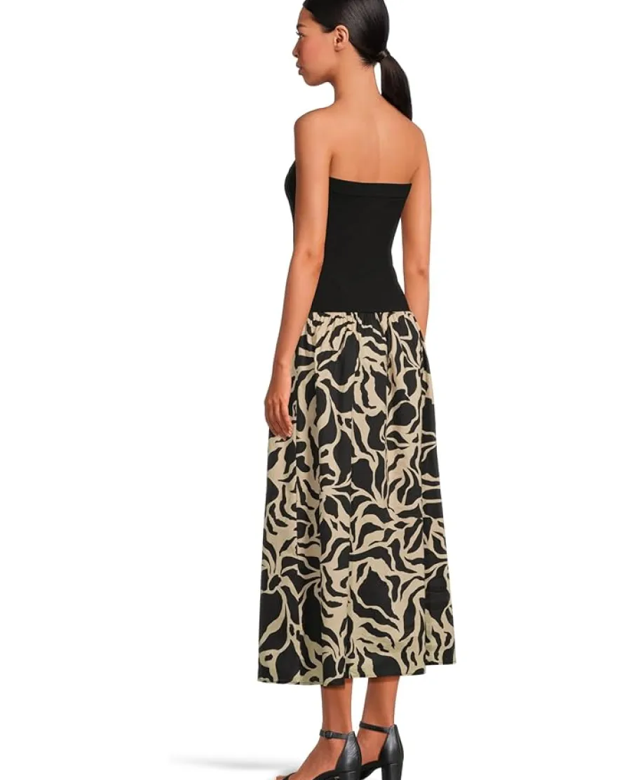 - Effortlessly stylish and beautifully detailed, the Sanctuary™ Meet Me At Sea Midi Dress elevates your fashion game. The strapless midi dress comes with an off-shoulder neckline and a graphic printed skirt that is intended to hit at the calves.