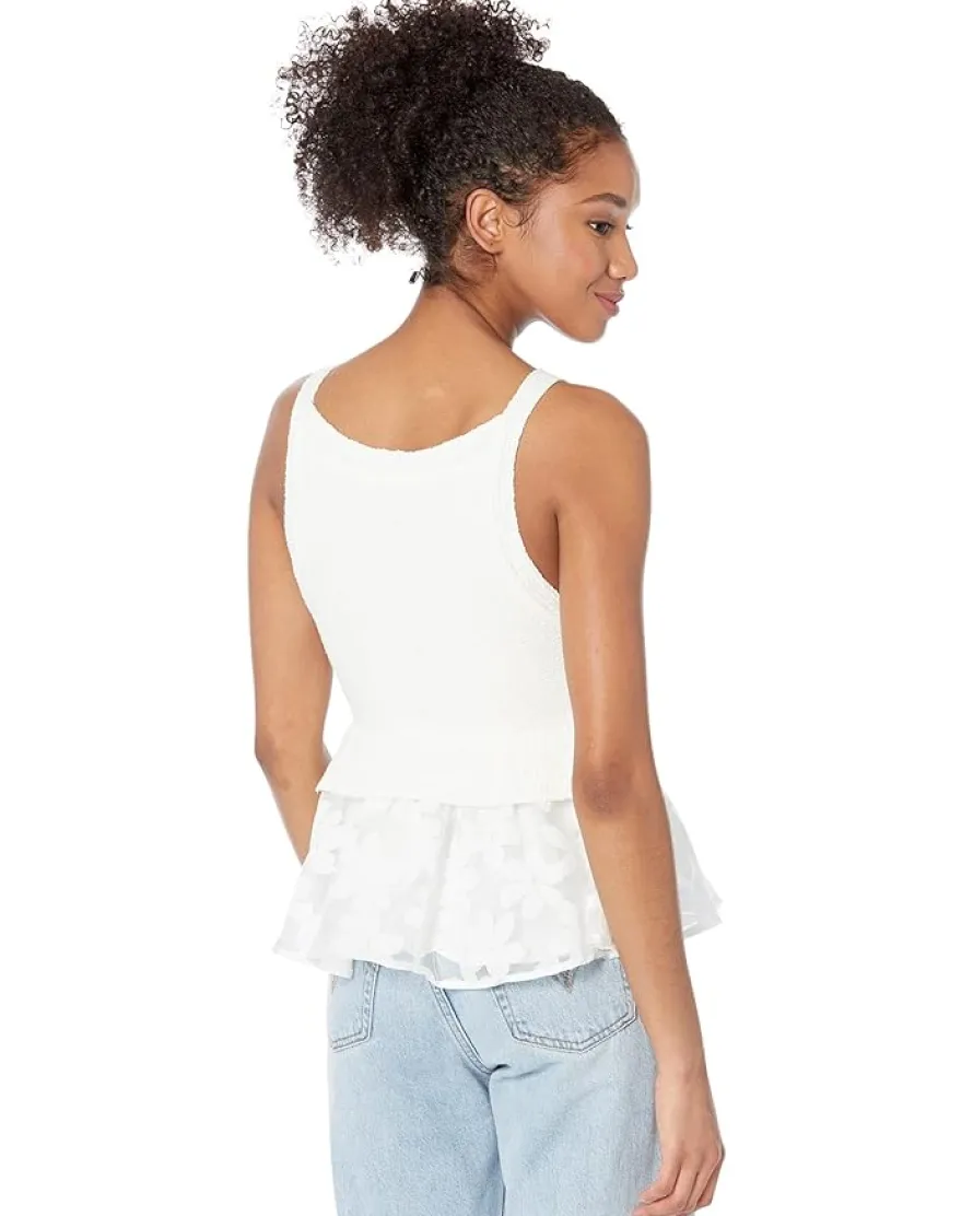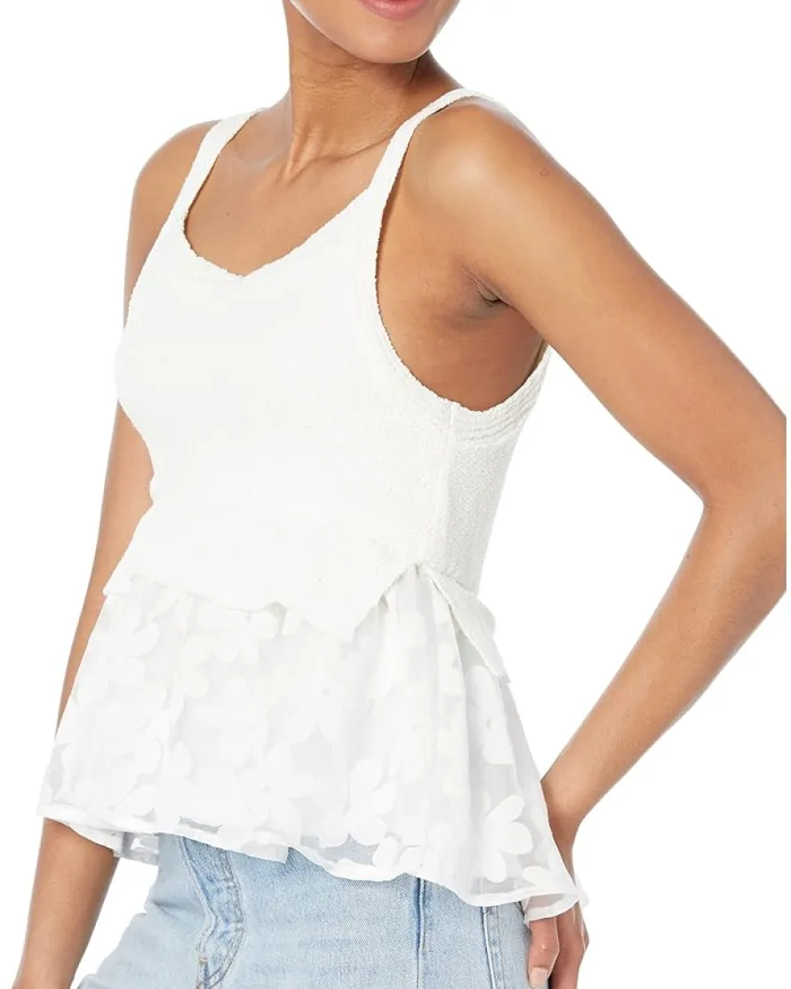 - Textured bodice with straight neck, shoulder straps, and ribbed hem.