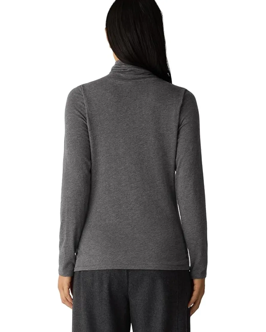 - The Eileen Fisher® Melange Sheer Knit Turtle Neck Top comes in a lightweight knit with a subtly sheer finish. The fluidity of Tencel Lyocell meets the softness of cotton. The pull-on style top features a turtleneck, long sleeves, and standard-length silhouette with a straight hem.
