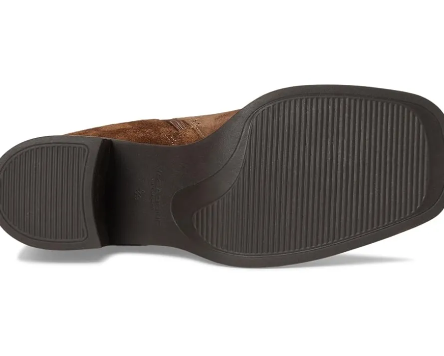 - Introducing the Vagabond Shoemakers® Meryl Suede Tall Boots. Crafted with a luxurious suede upper, these boots embody effortless minimalism while offering everyday versatility. The sleek knee-high silhouette is refined with a contemporary square toe, decorative seams, and a mid-rise shaft that balances elegance with rancher-inspired charm. A smooth fabric lining and premium leather insole provide all-day comfort, while the sturdy block heel delivers confident lift without sacrificing stability. Designed with a practical zippered side for easy wear, Meryl is the kind of boot you’ll reach for beyond the season, pairing seamlessly with dresses, skirts, or denim. The leather outsole ensures lasting durability, making this piece an investment in timeless style.