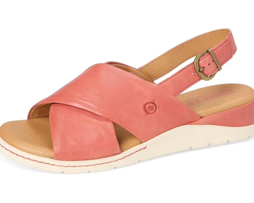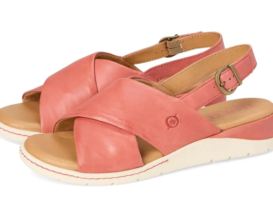 - Discover the perfect fusion of fashion and function with Børn® Mia sandals. With a unique sport-inspired design, the slip-on sandals feature soft leather upper construction. These wedge sandals offer unparalleled comfort for your active lifestyle.