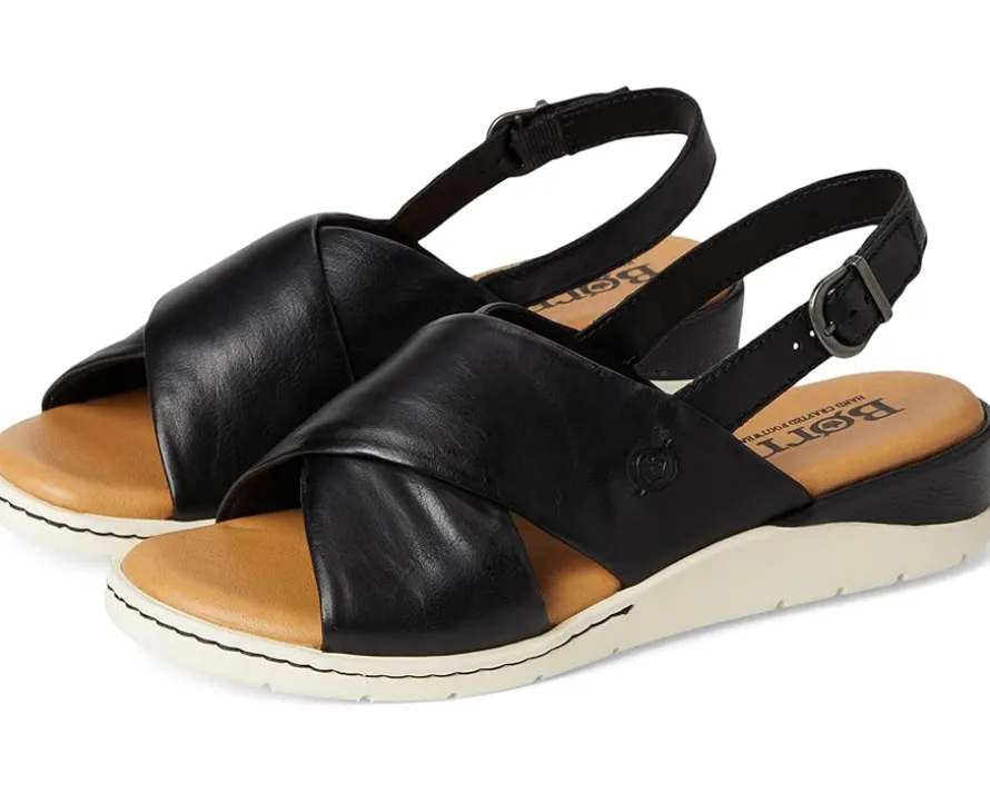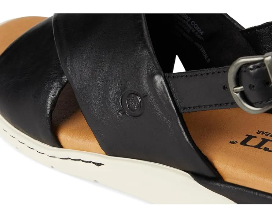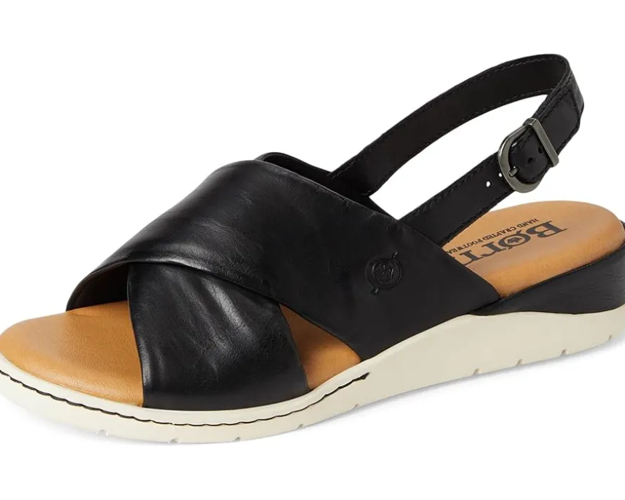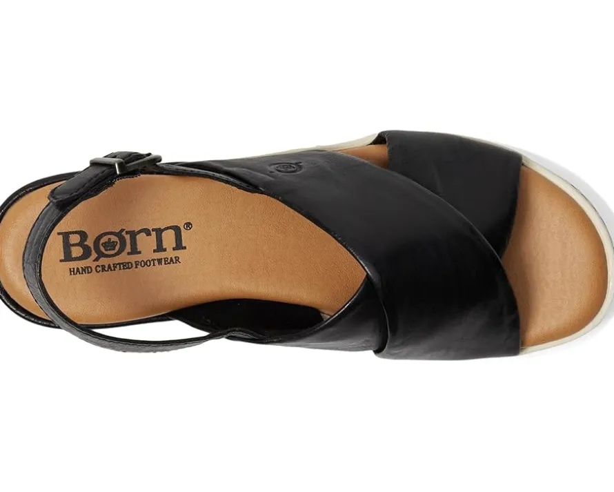 - Discover the perfect fusion of fashion and function with Børn® Mia sandals. With a unique sport-inspired design, the slip-on sandals feature soft leather upper construction. These wedge sandals offer unparalleled comfort for your active lifestyle.