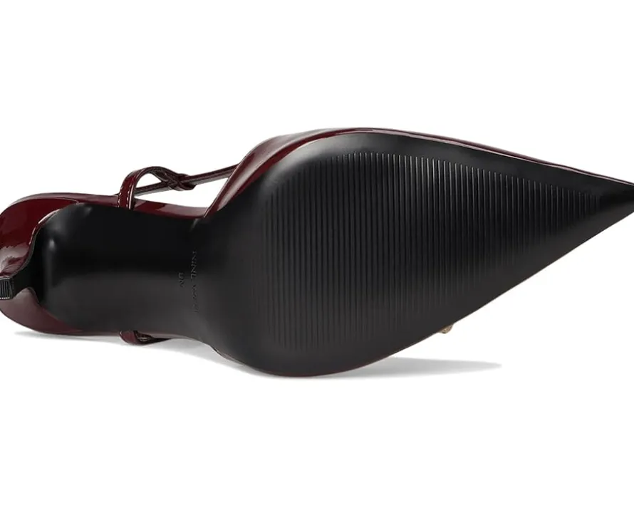 - Command attention and own every step in the Nine West® Mianda dress pumps. Designed with a sleek pointed toe and soaring stiletto heel, these pumps elevate any outfit from ordinary to unforgettable. The adjustable buckle ankle strap ensures a secure, custom fit, while the PU upper and manmade lining offer all-day wearability. A durable synthetic rubber outsole supports confident strides from boardroom to evening cocktails.