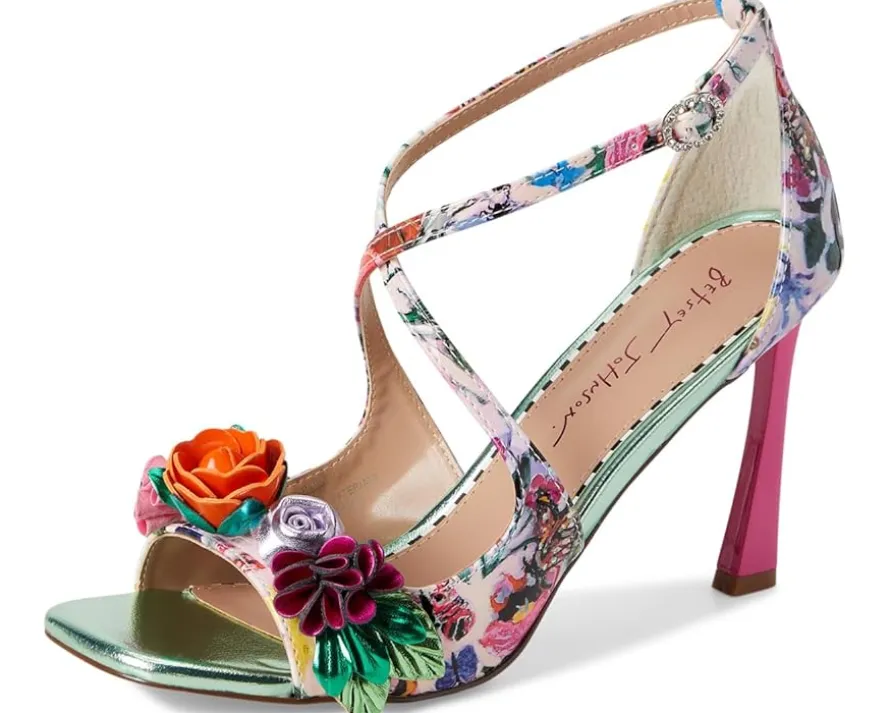 - Perfect for any fashionista, the Blue™ by Betsey Johnson Mikah is sweet and girly, featuring bright print and three-dimensional flower embellishment. The sandal is designed with a crisscross upper strap and an adjustable buckle closure.