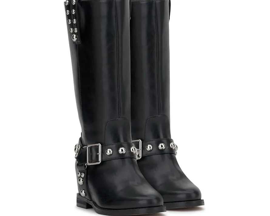 - The Jessica Simpson™ Milley Studded Moto Boots have a hidden secret! The hidden wedge gives you a little more height than flat boots but still has the studs and buckle detail of the classic boots. These ankle boots are crafted with a polyester insole and lining that keep your feet cool and comfortable. The leather upper of these boots is styled with pull loops for easy wear. Catch everyone’s attention wherever you go wearing these heeled boots.