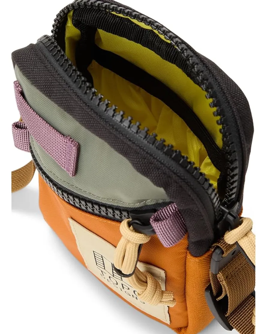 - Topo Designs® Mini Shoulder Bag has excellent daily utility, and the weight savings and durability you’ll appreciate while adventuring and traveling.