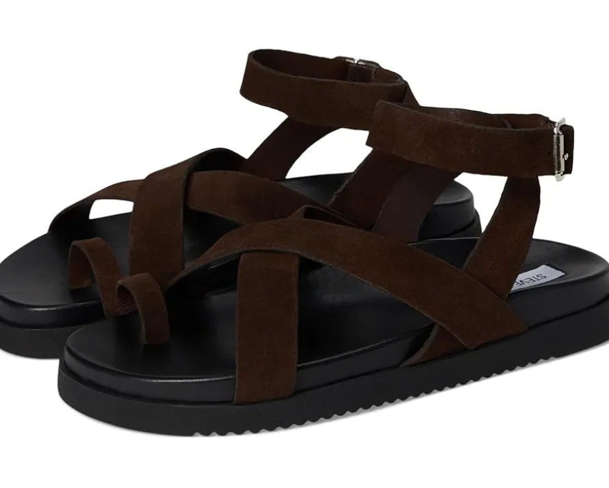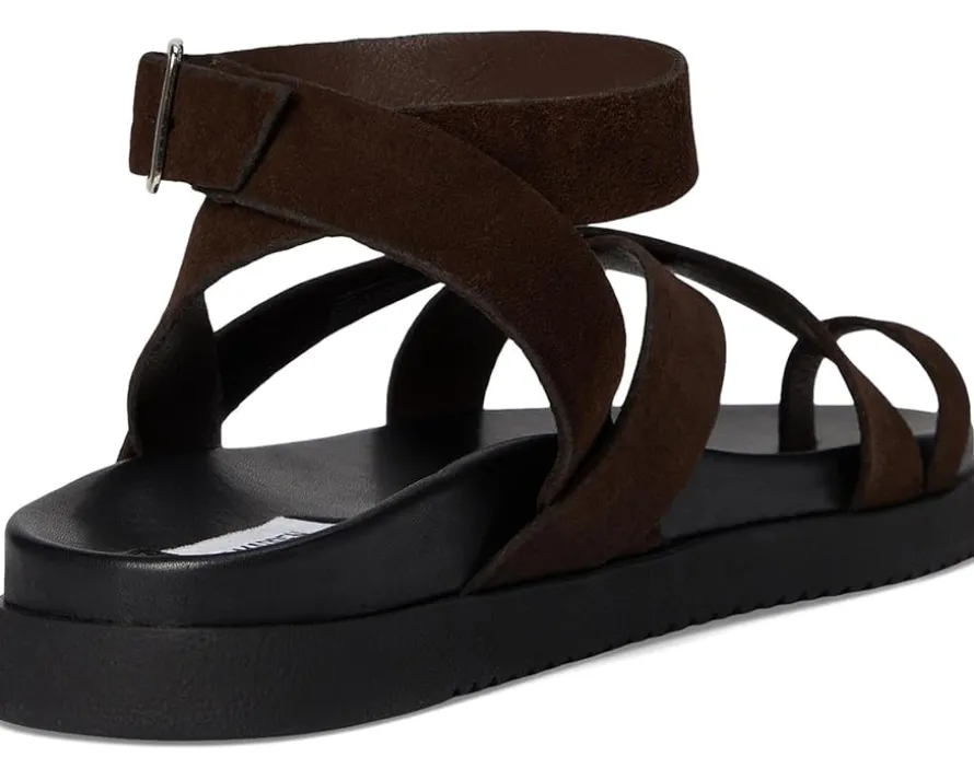 - Elevate your style with the Steve Madden® MIRA sandal. The sleek ankle strap and buckle closure provide secure and comfortable wear. These timeless sandals are perfect for any occasion, making them a versatile addition to your shoe collection. Featuring round toe, crisscross strap design, and brand detailing on the footbed.