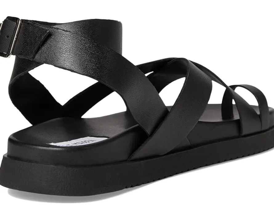 - Elevate your style with the Steve Madden® MIRA sandal. The sleek ankle strap and buckle closure provide secure and comfortable wear. These timeless sandals are perfect for any occasion, making them a versatile addition to your shoe collection. Featuring round toe, crisscross strap design, and brand detailing on the footbed.