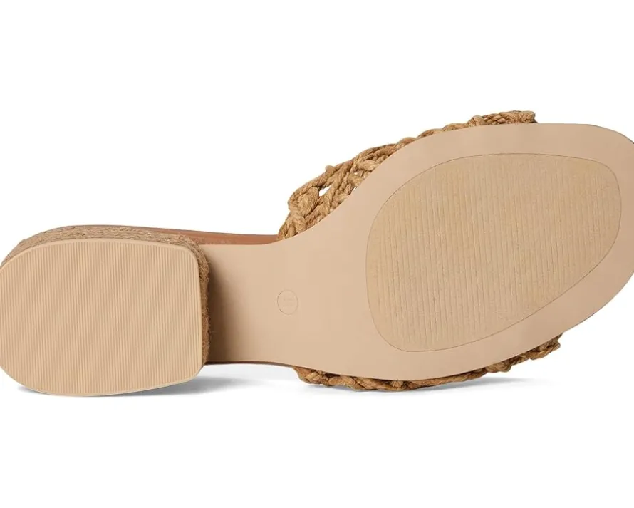 - Walk light and look chic wearing the MIA™ MLE-Idella. Crafted from jute upper, faux leather lining, and insole, this pair of sandals features open round toe, wide jute strap, slip-on style, block heel, and brand detailing on the footbed.