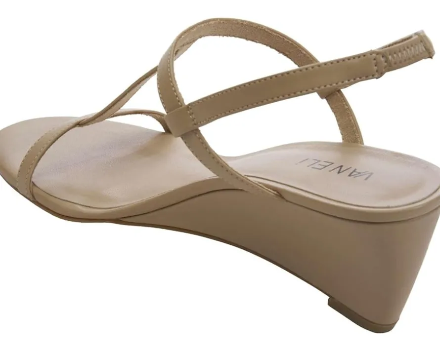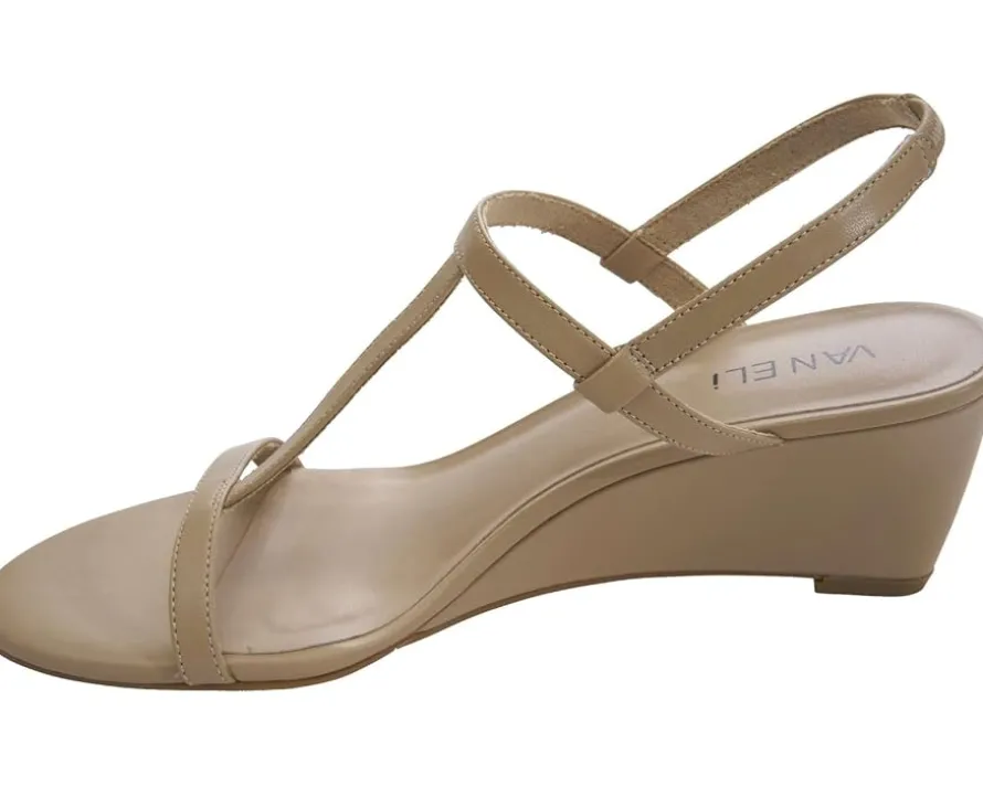 - Bring comfort to your feet and style to your look by wearing the Vaneli® Mohan. The slip-on style sandals have an open cap-toe design, strappy silhouette, buckle closure, and wedge heels for undeniable aesthetics. The lightweight heels have leather upper, lining, and faux leather insole for unparalleled comfort and support, making your feet feel like they’re walking on clouds.