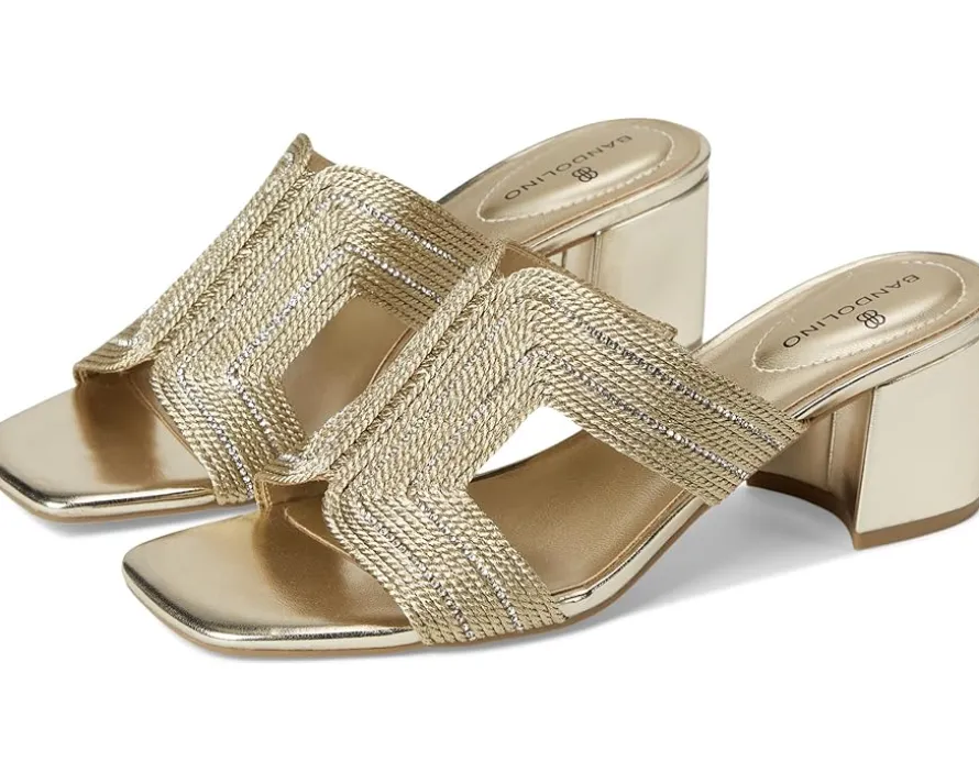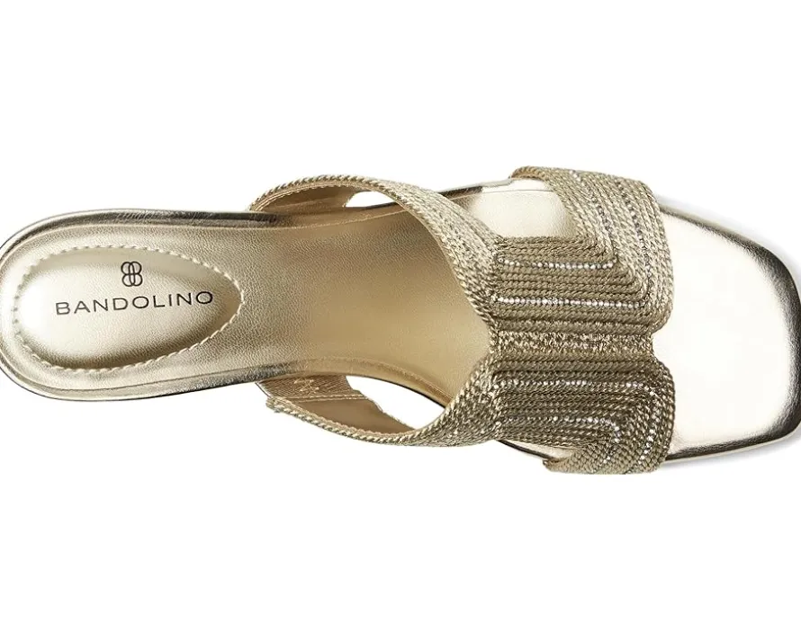 - The Bandolino® Molane sandals add instant style to any outfit. These dress sandals feature mid-block heels, bow detailing, and a modern square toe design. They are made of a polyester upper, foam insole, and polyurethane lining. A mix of timeless design and uncompromising quality, these heeled sandals are the perfect wardrobe staple!