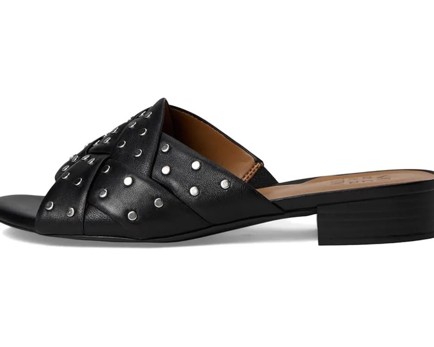 - Slip-on style in a round, open toe silhouette.