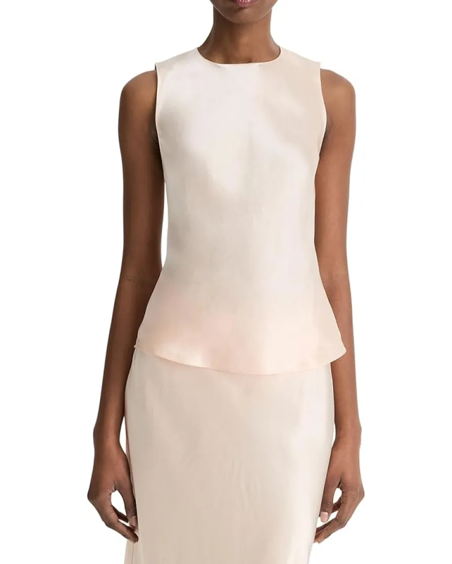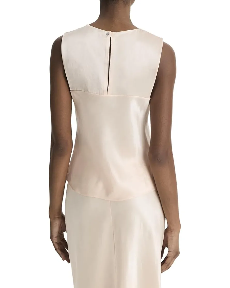 - Crafted from responsible Naia Renew acetate satin, the Vince® Naia Shell accentuates a luxurious appeal. The pull-on style top features a crew neck, sleeveless design, back-button closure, and a bias-cut in standard length.