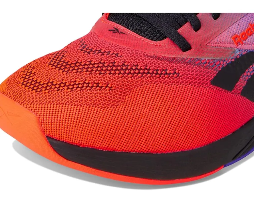 - Get ready to crush your fitness goals and move with confidence – the Nano X5 by Reebok® is your perfect workout partner! Engineered for versatility, these athletic shoes for men and women are built to jump, climb, and conquer any workout with unwavering confidence. Featuring a premium FLEXWEAVE polyester upper, they offer a 360-degree locked-in fit for superior comfort and stability, while the decoupled METASPLIT rubber outsole enhances flexibility and runnability. Designed for both performance and style, the Lift and Run Chassis system optimizes agility, speed, and endurance. With responsive cushioning, these shoes deliver the lightweight feel of running shoes while maintaining the stability of training shoes.