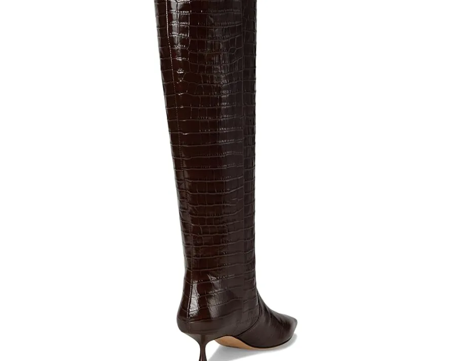 - Hit the streets with whimsy flair wearing Stuart Weitzman® Naomi 50 Boot. The mid-top footwear features leather upper and lining construction with pointed toe silhouette complementing the sleek stiletto heel.