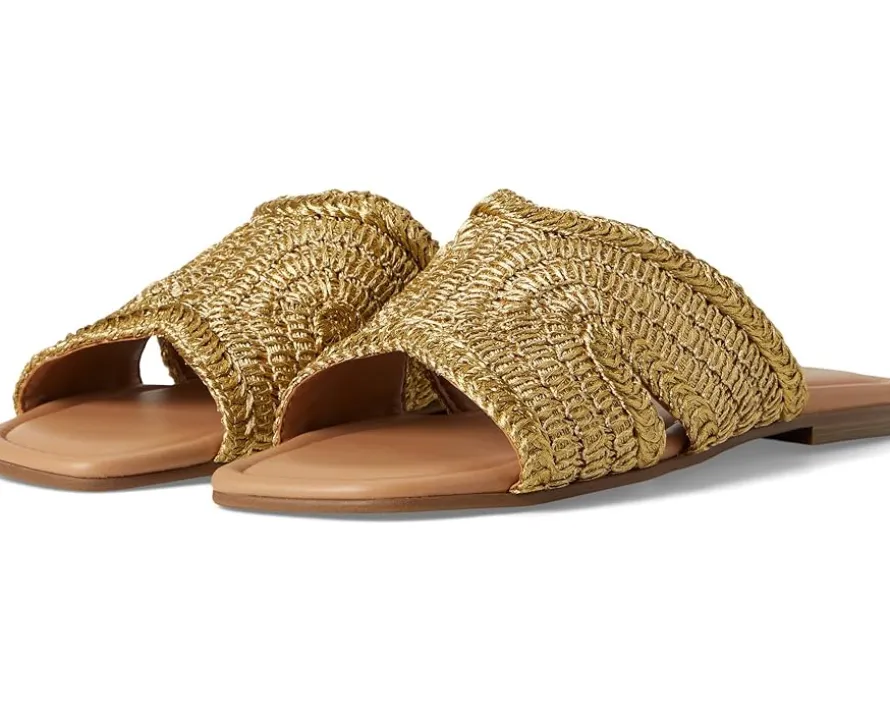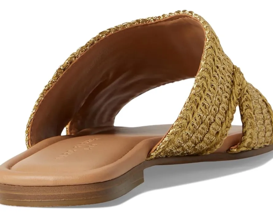 - Designed to enhance your go-to style and comfort during those warmer days, the Marc Fisher LTD™ Narda Flat Sandals feature a breezy and lightweight construction with a textured woven raffia (synthetic) upper, a synthetic lining, and a lightly padded insole. Coming in a slip-on style, the shoes are easy to put on and off.