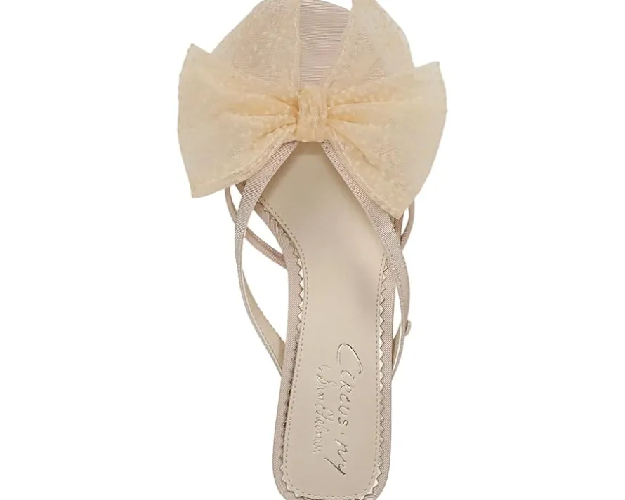 - Elevate your style with the Circus NY by Sam Edelman® Natalina sandals. These chic sandals boast a pointed toe silhouette and a unique touch with a butterfly bow adorning the front. The translucent kitten heel adds an extra element of sophistication.