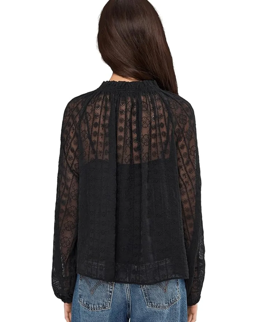 - The Nayla Lace Top from Madewell® is a lightweight, semi-sheer blouse designed with a soft, flowing bohemian vibe. It features a delicate ruffled neckline that can be tied into a bow or left loose for a more relaxed look. The long sleeves have subtle volume with ruffled cuffs.