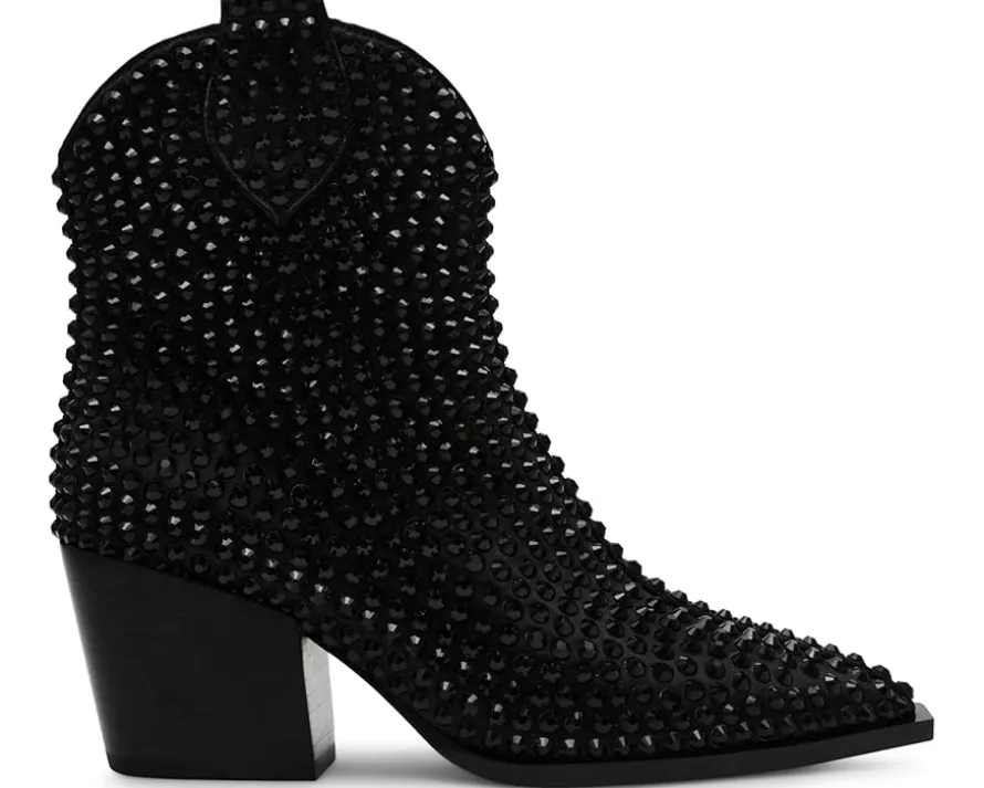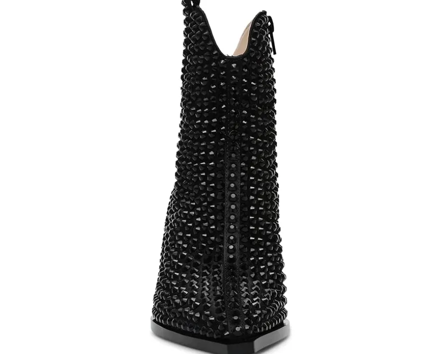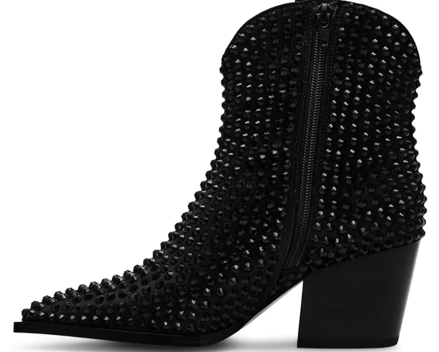 - The perfect reason to glam up any look of yours! The Neil booties by Blue™ by Betsey Johnson are Nashville by way of Las Vegas with the classic curved topline, snipped toe, and angled block heel of a cowboy boot plus allover rhinestone embellishment to spice things up. The chunky rhinestone studs encrusting the upper add both texture and sparkle to these glamorous ankle-high boots.