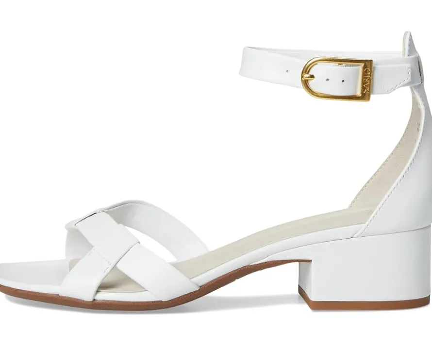 - With its timeless design, this Franco Sarto® Nerissa sandal will be your go-to silhouette all season long. This square toe style features leather upper construction and a buckle adjustable ankle strap closure.