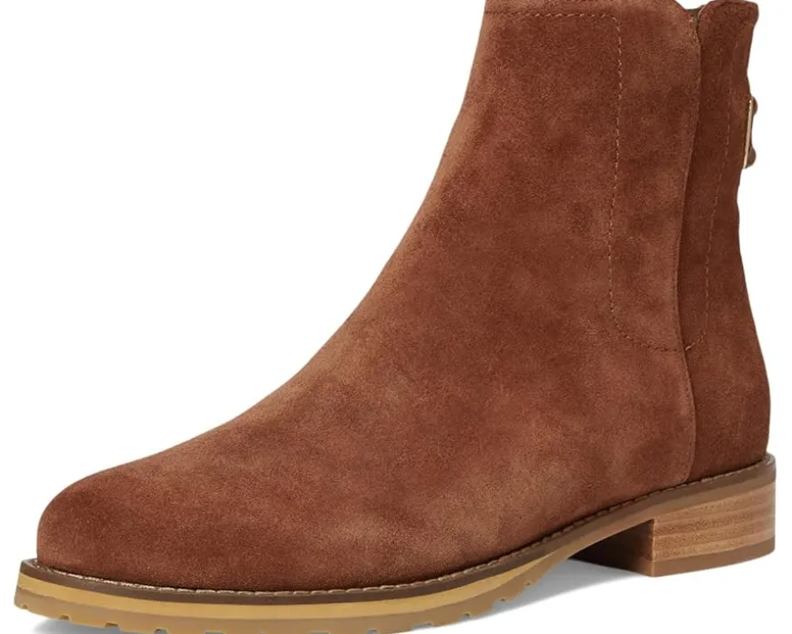 - Step out with unique flair wearing the Jack Rogers® Newbury Bootie. Crafted in luxurious suede, these ankle boots feature signature stitch detail on the back tab. The block heel offers comfort and stability, while the side zipper ensures easy entry.