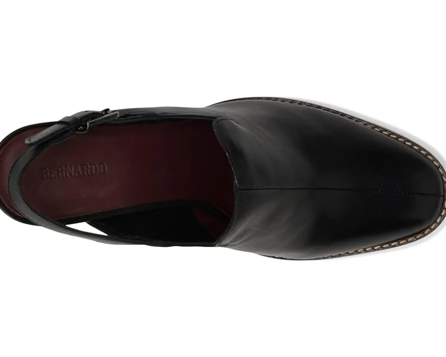- The intersection of chic and comfortable styling Bernardo® Neza. Crafted with a luxe leather upper, lining, and insole, the sandal brings timeless polish to your day-to-day look. Its sharp silhouette nods to menswear-inspired tailoring, while the block heel adds just the right amount of lift, perfect for all-day wear. The slingback design with an adjustable buckle ensures a custom fit, and the slip-on style keeps things effortlessly chic. Finished with a durable rubber outsole, this versatile staple pairs beautifully with tailored trousers or your favorite denim.