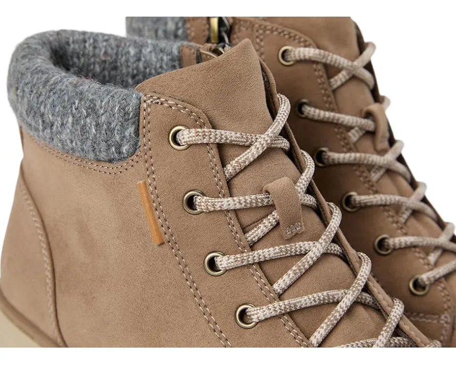 - Comfortable and durable, the Dr. Scholl’s® Nice Day Max Alpine boots feature a faux fur collar that keeps your feet warm and cozy. The partially recycled wool blend upper of these boots comes with a lace-up closure for a secure fit. These ankle boots are made of a 15% cushy plant-based BLOOM® foam insole with Insole technology that delivers cushioning, comfort, and support. The fabric linings, topcloth, toe box, and heel counter are partially made from recycled plastic bottles. Get ready for the cold weather wearing these lace-up boots.