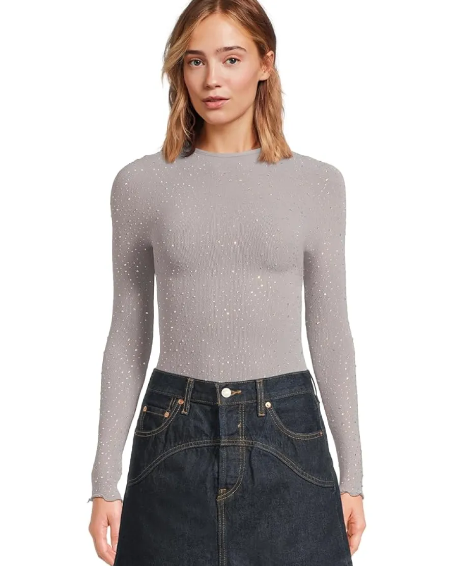 - Step into the spotlight with this long-sleeved bodysuit from Intimately, featuring mesh panels for a bold and daring look. This bodysuit is perfect for when you want to show off some skin and keep it cool.