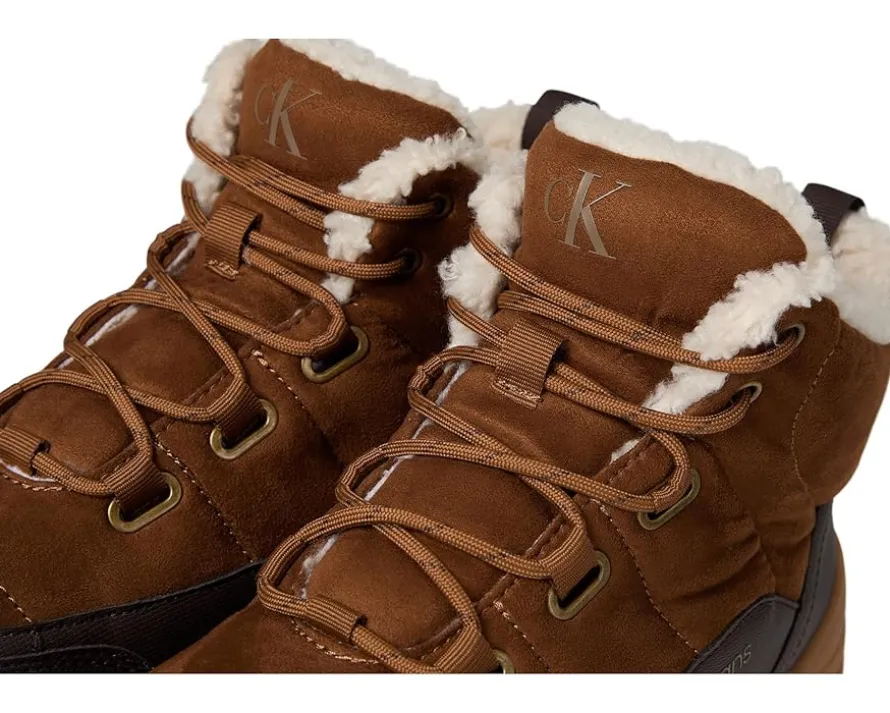 - Step up your look in the Calvin Klein® Noanne casual boots. This ankle-high footwear features a lace-up design, signature logo detailing and a sleek round toe silhouette.