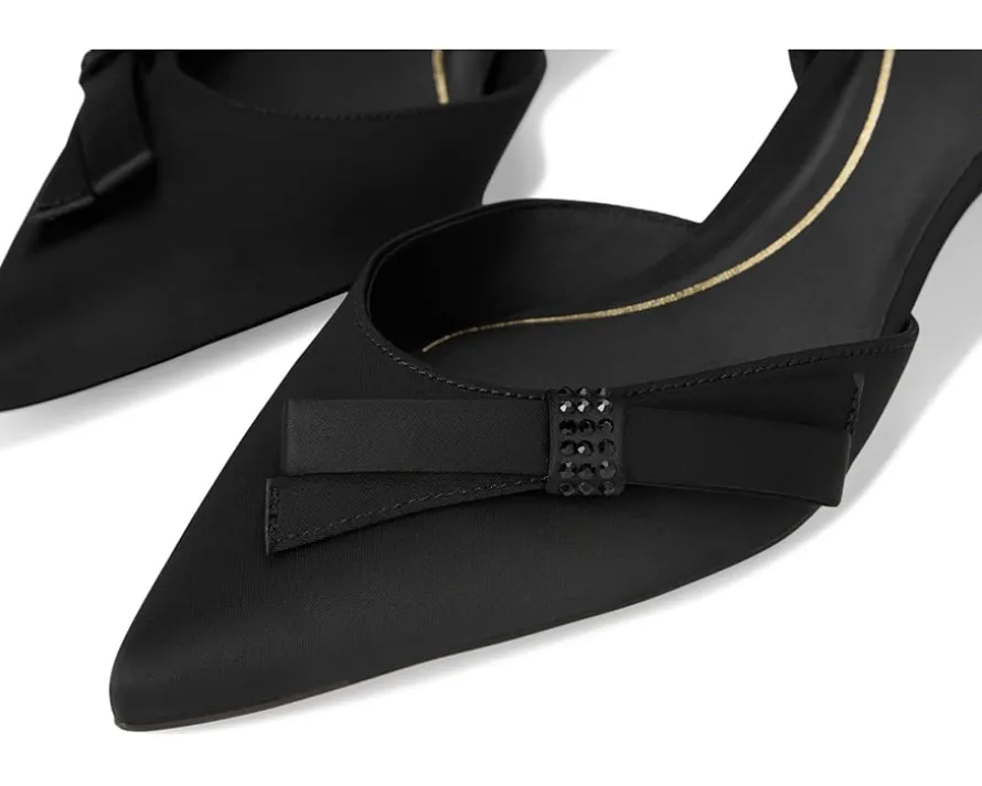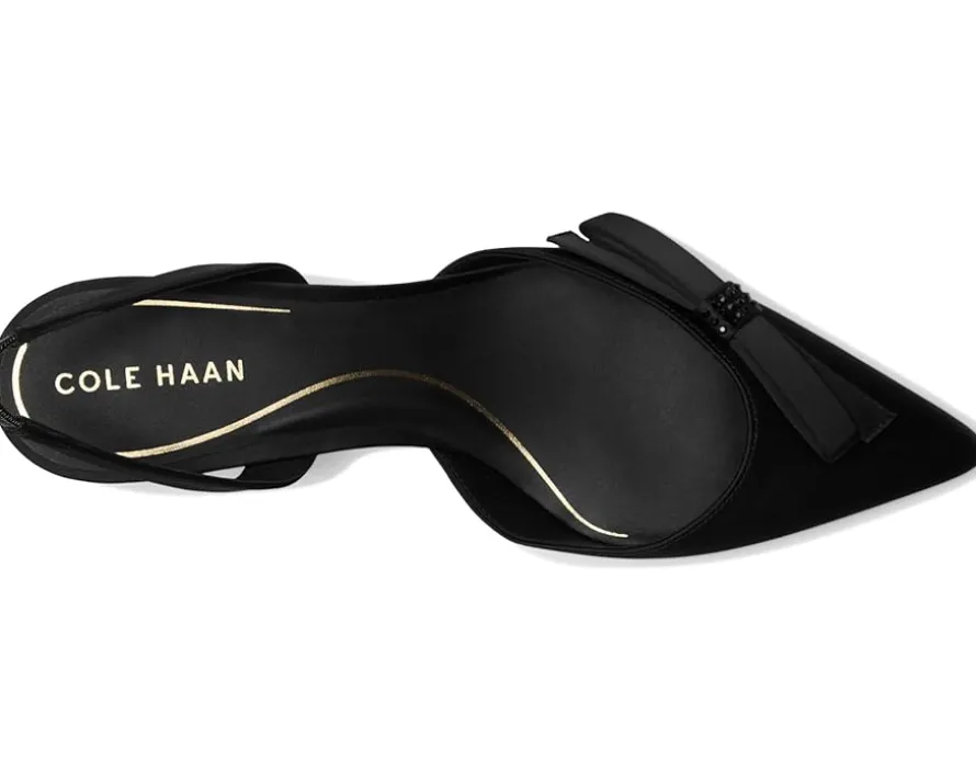 - Showcase your glitz, glam, and good vibes wearing the Cole Haan® Noella Bow Sling Pump. Crafted from leather upper, and EVA insole, this pair of heels features pointed toe, two piece pump with asymmetrical bow detail, gore on halter strap to ensure best fit results, 3d lux comfort sock, leather lined sock, buffed synthetic outsole that contains recycled rubber content with weave laser design at forepart for traction.