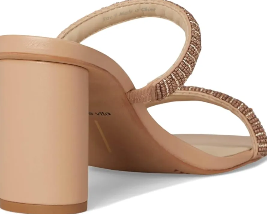 - Dolce Vita® Nolah, a stylish heeled sandal offering a chic look and versatile comfort for various occasions. Crafted from leather upper, lining, and insole, this pair of sandals features open square toe, two strap detailing, block heel, and brand detailing on the footbed.