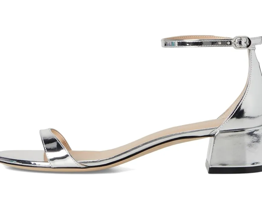 - Make a statement wearing the Stuart Weitzman® Block 35 heels. Featuring sleek leather strap upper and premium mestizo leather, these heels are as stylish as they are comfortable. The leather insole and open toe design ensure all-day wearability, while the block heels add a touch of elegance to any ensemble.